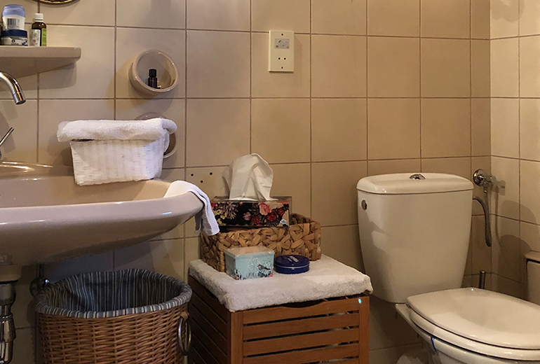 | Badezimmer mit Wanne und WC sowie mit Fenster | |